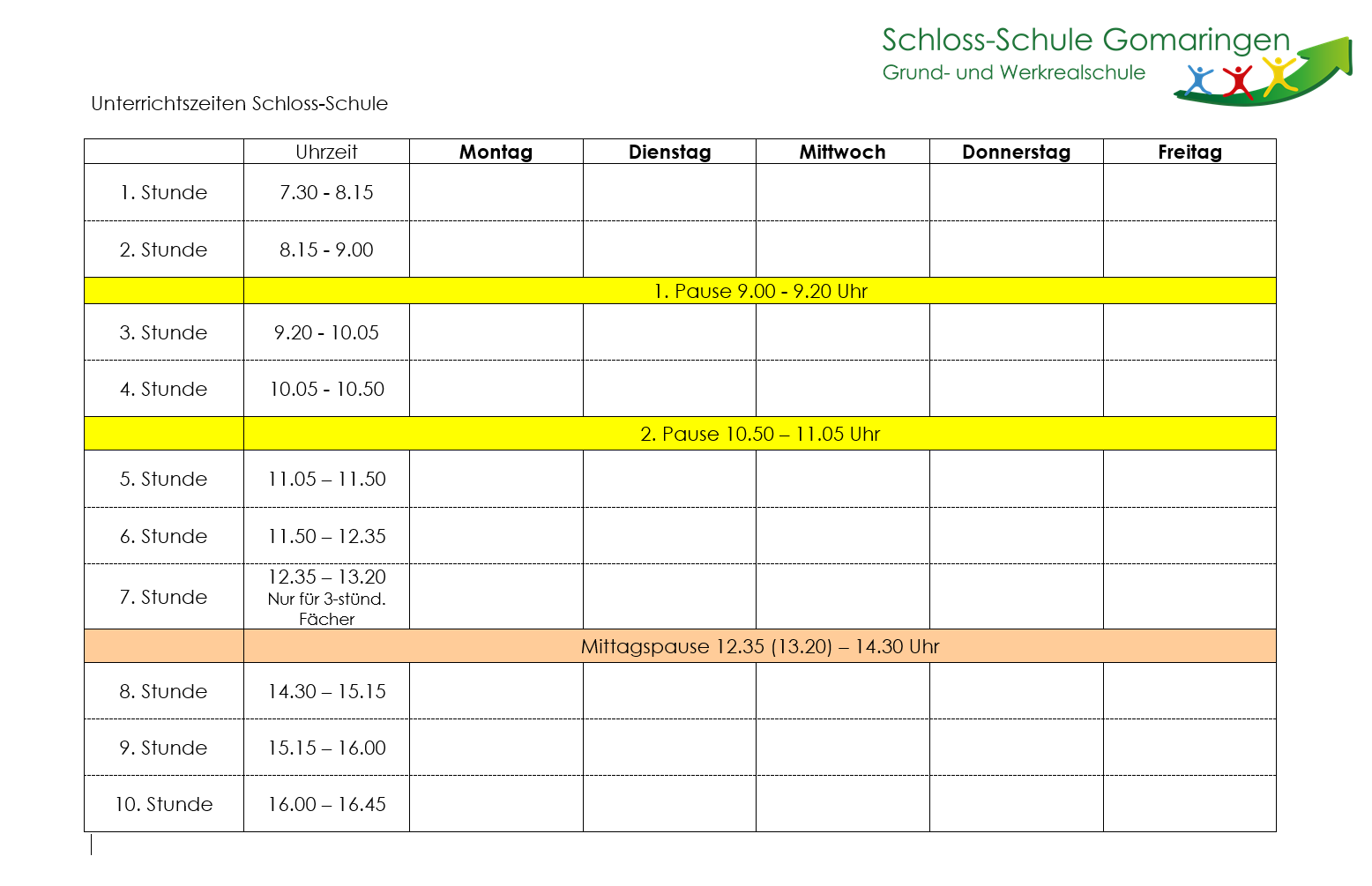 Unterrichtszeiten an der Schloss-Schule